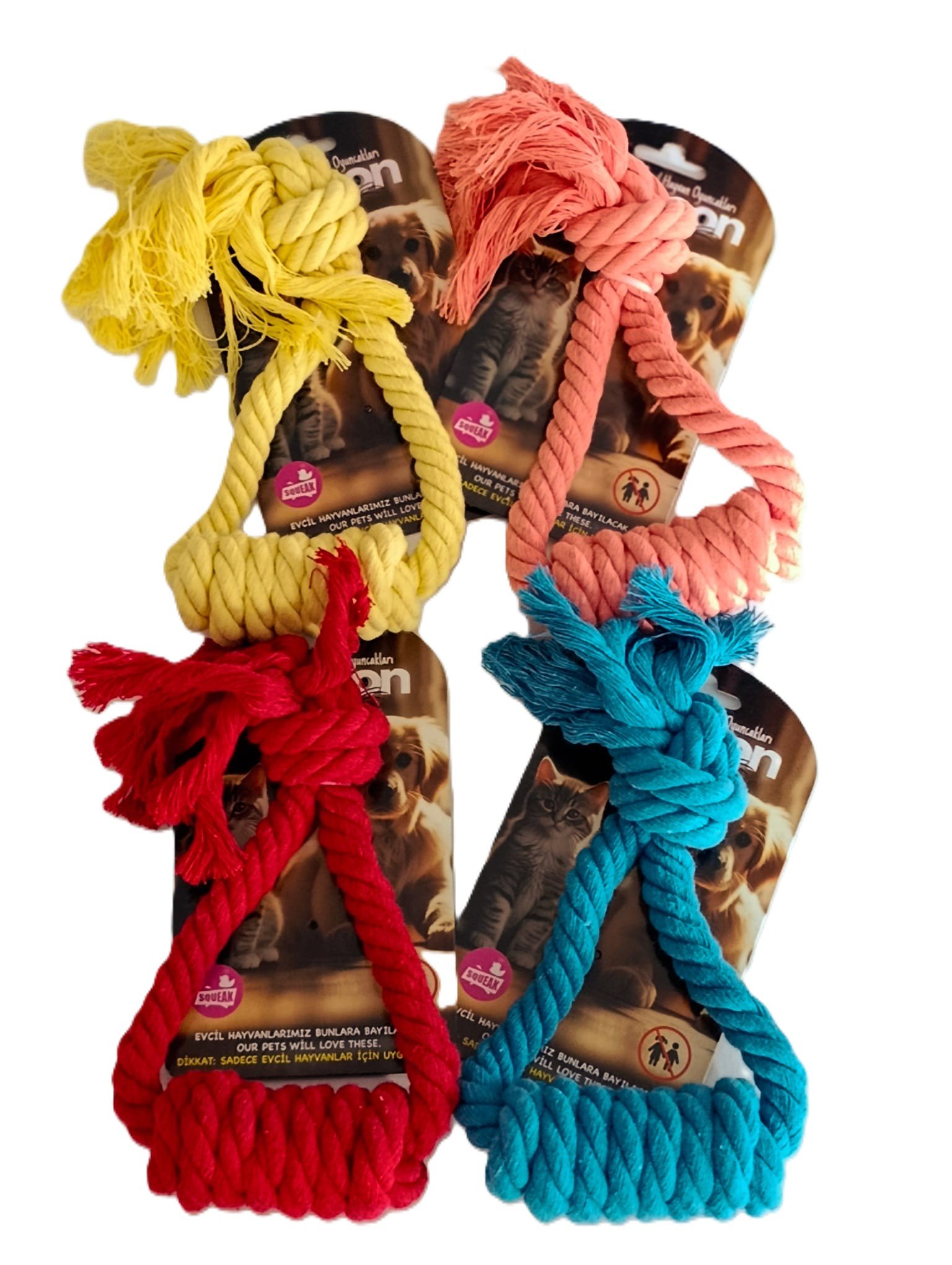– Canlı renkleri ve dayanıklılığı ile dikkat çeken bu halat oyuncak, evcil dostlarımızın keyifli zaman geçirmesini sağlar.